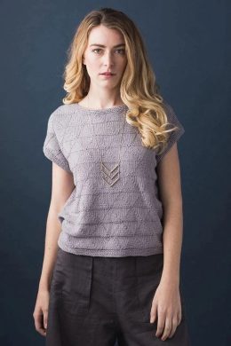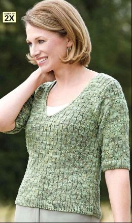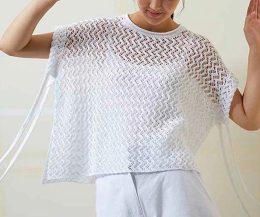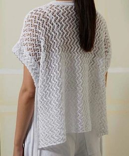 Творческий вихрь изящных узоров и изысканных плетений! Эта ажурная кофточка с короткими рукавами и волнообразным узором по центру захватывает дух. Круглый вырез...