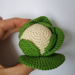 Привет! Вот такая очаровательная вязаная капуста, которая выглядит почти как настоящая. Обратите внимание на аккуратно связанные листья и текстурированную серед...