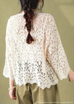 Приветствую, любители вязания! Этот ажурный свитер с широкими рукавами - настоящий хит! Обратите внимание на изысканный узор и стильные волнистые края, которые...