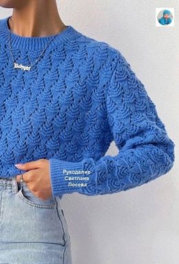 Пусть этот уютный свитер приносит тепло и радость в каждый ваш день! Обратите внимание на изящный ажурный узор и насыщенный голубой цвет — они делают это издели...