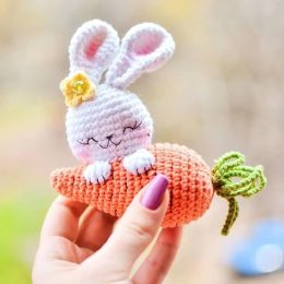 Когда кролик забывает, что он не садовод, получается вот такой милый результат! Этот очаровательный амигуруми-кролик уютно устроился на вязаной морковке, добави...
