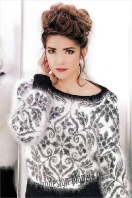 Спицами, с заметного контраста в цветах, этот свитер выделяется своим замысловатым орнаментом и приятной текстурой. Мягкий ворс и изящный рисунок делают его иде...
