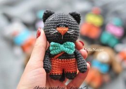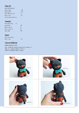 Этот милый котик связан крючком из мягкой пряжи. Интересный факт: его яркий бирюзовый галстук-бабочка и рыжие штанишки придают ему особый шарм, делая его идеаль...