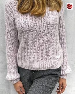 Спицами создается не только одежда, но и тепло, которое обнимает в прохладные дни. Этот объемный пуловер с короткими рукавами, выполненный в нежном лавандовом ц...