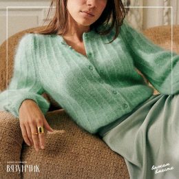 Начинается с изящного плетения шнурка, продолжается мягким трикотажем, который обрамляет плечи, а завершают образ аккуратные полоски на краях. Описание вязания...