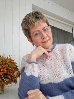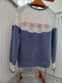 Когда я впервые увидела этот свитер, сразу вспомнилась бабушкина шаль, которую она вязала долгими зимними вечерами. Мягкий бело-голубой узор напоминает пушистые...