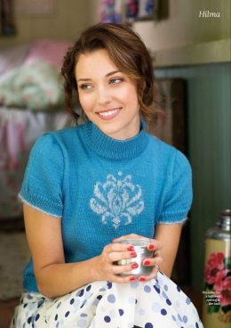 Эта вязаная спицами кофточка напоминает о теплых вечерах с чашкой чая. Изящный узор на груди и мягкий голубой цвет делают её особенно привлекательной. Симпатичн...