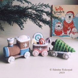Это уникальное вязаное изделие сочетает в себе очарование детства и мастерство рукоделия. Паровозик с вагонами, наполненными леденцами и елочкой, радует глаз св...