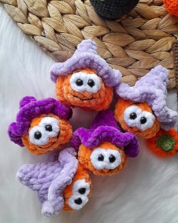 Пусть эти милые ведьмочки принесут вам радость и уют! Очаровательные оранжевые шары с большими белыми глазами и забавными фиолетовыми и сиреневыми шляпками отли...