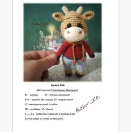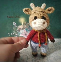 Мудрость гласит: "Красота в мелочах". Этот очаровательный вязаный бычок носит стильные голубые штанишки и уютный красный свитер, создавая атмосферу уюта и радос...
