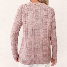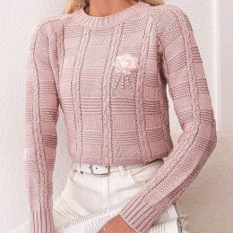 Ах, нежность розовых нитей! Этот свитер, связанный спицами, словно облако, окутывает теплом и комфортом. Изящный узор в клетку с акцентом на милый цветочный эле...