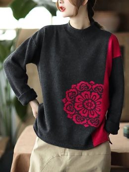 В каждом стежке — история, в каждом узоре — мудрость. Этот уютный свитер сочетает в себе темные оттенки с яркими акцентами. Обратите внимание на большой цветочн...