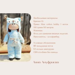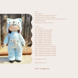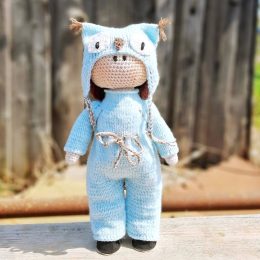 Привет! Посмотри на эту очаровательную вязаную куклу в голубом костюме с капюшоном в виде совы. Обрати внимание на милые ушки и забавные глазки, которые придают...