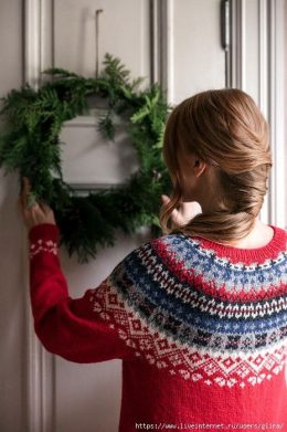 Здравствуйте, дорогая! Как Вам это великолепие? Этот яркий красный свитер с узором из снежинок и геометрических фигур прямо-таки дышит зимним уютом. Обратите вн...