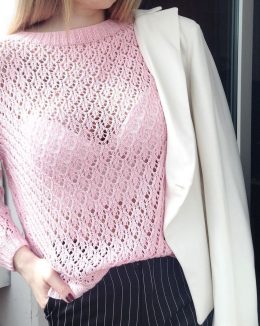 Ой, Вы только посмотрите на этот потрясающий розовый ажурный свитер! Как Вам сочетание нежного розового и воздушного узора? Такой свитер просто создан для того,...