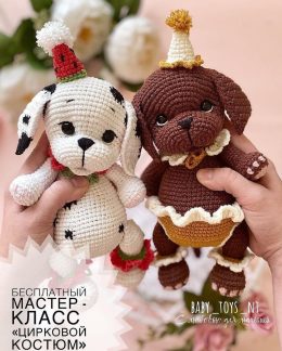 Вы только посмотрите, какие очаровательные малыши! Эти вязаные собачки просто покоряют своей милотой, не правда ли? Белый щенок в шапочке с помпоном и красными...