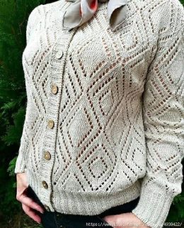 Ах, какой восхитительный кардиган у Вас, дорогая! Этот стильный сетчатый узор просто завораживает. Особенно мне нравятся аккуратные белые пуговицы, которые доба...