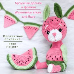 Ах, какая прелесть, Вы только взгляните на этого милашку! Зайчик в наряде арбуза – прямо-таки сочный кусочек лета. Ушки как дольки арбуза, а эти семечки на морд...