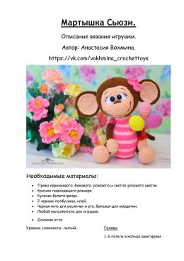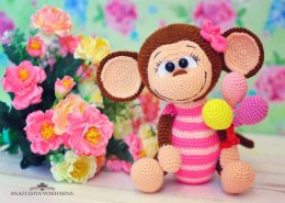 Ах, какая очаровательная обезьянка! Вы только посмотрите на эти милые ушки и яркие глазки. А как Вам ее розовая полосатая кофточка и цветочек у ушка? Просто чуд...