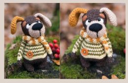 Этот очаровательный вязаный щенок, кажется, вот-вот начнет вязать сам. Вы только посмотрите на его серьезное выражение и уверенную хватку крючка! В стильных син...