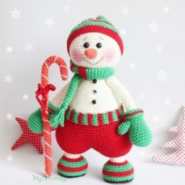 Здравствуйте, моя дорогая! Посмотрите на этого милого снеговика - какой обаятельный! У него в руках яркая крючковатая трость, а зеленые рукавички идеально допол...