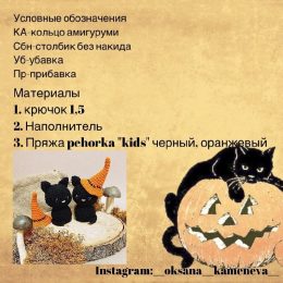 Здравствуйте, дорогая, взгляните на эти очаровательные вязаные создания! Два милых чёрных котика в оранжевых ведьмовских шляпах, они просто покоряют своими блес...
