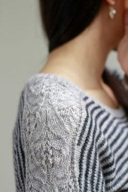 Уважаемая подруга, взгляните на этот очаровательный свитер, связанный спицами! Полоски придают ему современный и стильный вид, а кружевные узоры на рукавах доба...
