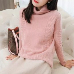 Моя дорогая, посмотрите на это очаровательное розовое чудо! Этот свитер с высоким воротником связан спицами и буквально обнимает своим мягким узором. Тонкие кос...