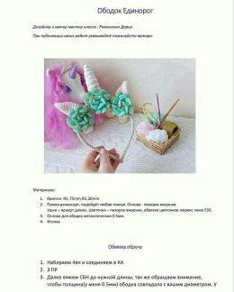 Здравствуйте, дорогая! Посмотрите-ка на эту очаровательную повязку с единорожьими ушками и цветами. Эти нежные розочки и блестящие рога просто созданы для того,...