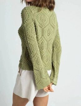 Ну что, дорогая, Вы только взгляните на этот узор! Кажется, будто кто-то перенес изящные лепестки прямо на плечи. Эти ажурные детали делают свитер таким воздушн...