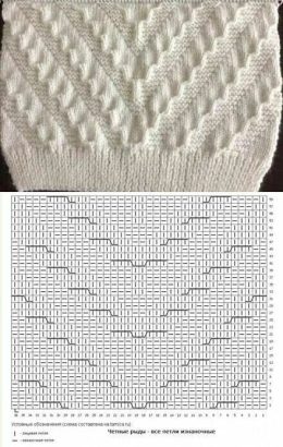Здравствуйте, дорогая! Посмотрите, какой чудесный узор спицами у нас здесь. Эти изящные косички и диагональные линии просто завораживают. Кажется, будто они тан...