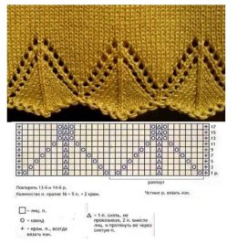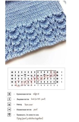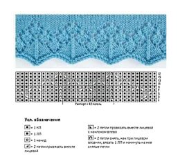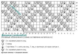 На схеме - узор для переда и спинки, раппорт - 12 петель (+1 петля) и 20 рядов. В изнаночных рядах все петли вяжутся изнаночными
