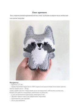 Представляем вам очаровательного енота, связанного крючком! Этот маленький и милый зверек станет замечательным подарком для всех любителей ручной работы. Какие...