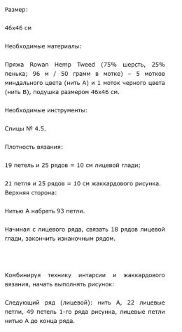 Описание вязания наволочки от дизайнера Martin Storey.