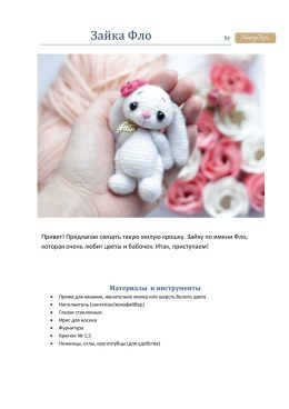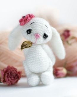 Влюбитесь в его трогательные глазки и очаровательный розовый цветочек на ушке. Этот кролик станет отличным подарком для детей и взрослых. Сделан из мягкой пряжи...