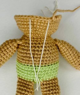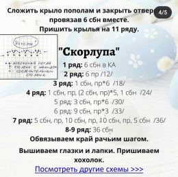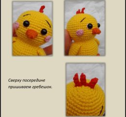 Во второй части вяжем спинку, крылья, клюв и приступаем к оформлению игрушки.