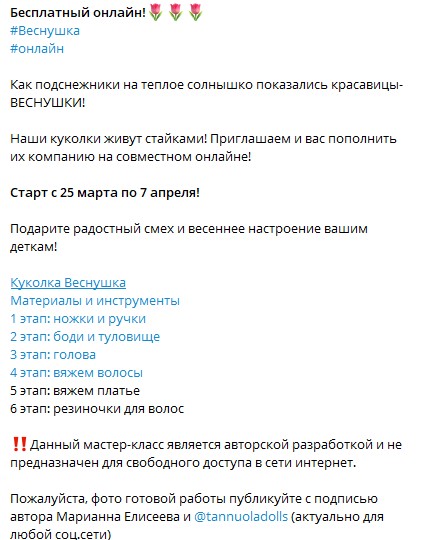 Добрый день, уважаемые рукодельницы! Сегодня я рада представить вашему вниманию новый мастер-класс по вязанию кукол. Автором этих очаровательных кукол является...