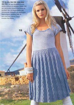 Платье с расклешенной ажурной юбкой и облегающим полосатым лифом Размеры - 34/36 (38/40) 42/44 Вам потребуется: 600 (650) 700 г голубой и 100 (150) 150 г...