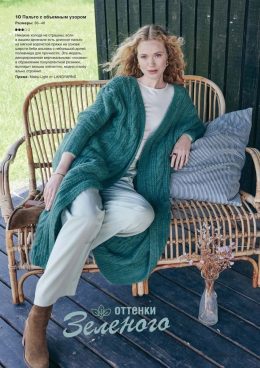Этот узор выполнен спицами и представляет собой изящный ажурный рисунок с мотивами в виде листочков, соединённых воздушными отверстиями. Особенность модели — ра...