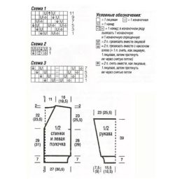 Изделие выполнено спицами с использованием ажурной сетчатой вязки, что придаёт ткани лёгкость и воздушность. Особенность модели — широкие рюши на коротких рукав...