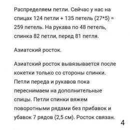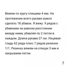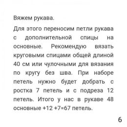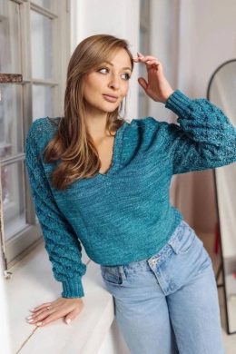 Изделие выполнено спицами с использованием техники регланных линий, которые создают уникальную форму рукава и обеспечивают комфортную посадку. Особенность модел...
