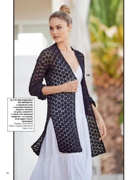 Этот длинный кардиган поражает своей легкостью и воздушностью благодаря изящному ажурному узору. Высокие боковые разрезы добавляют изделию свободы движений и де...