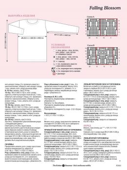 Спицами создан изысканный свитер с оригинальным ажурным узором, напоминающим падающие цветы. Особенность модели — сочетание волнистых и цветочных мотивов, прида...