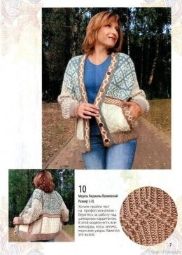 Этот кардиган напоминает уютные осенние прогулки в парке, когда холодный ветер играет с листьями, а тепло вязки согревает душу. Модель Людмилы Пряжевской выделя...