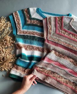 Пусть эти уютные жилеты согреют вас в прохладные дни и принесут комфорт в каждый момент. Вязка с эффектными полосами и необычными текстурными элементами создаёт...