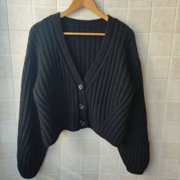 Привет, любители стильных находок! Этот черный кардиган с объемными рукавами и асимметричным низом точно не даст вам остаться незамеченными. Его рельефная вязка...