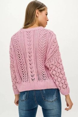 Этот свитер создан для тех, кто ценит комфорт и стиль в летнюю пору. Уникальный узор из нежных переплетений придает изделию воздушность и изящество, а мягкая пр...