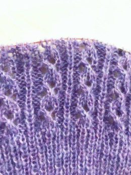 Топ выполнен спицами из мягкой пряжи с оригинальным листовым узором, который придает изделию легкость и воздушность. Отличается аккуратными боковыми вставками и...