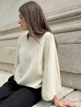 Объемные рукава с ажурной линией по шву придают свитеру воздушность и легкость, создавая уникальный силуэт и акцентируя внимание на деталях вязки. Лёгкая, возду...