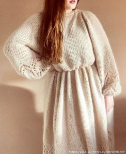 Уникальная текстура ткани придает изделию воздушность и уют, а нежный цвет добавляет легкости. Платье идеально подходит для прохладных вечеров, а его универсаль...